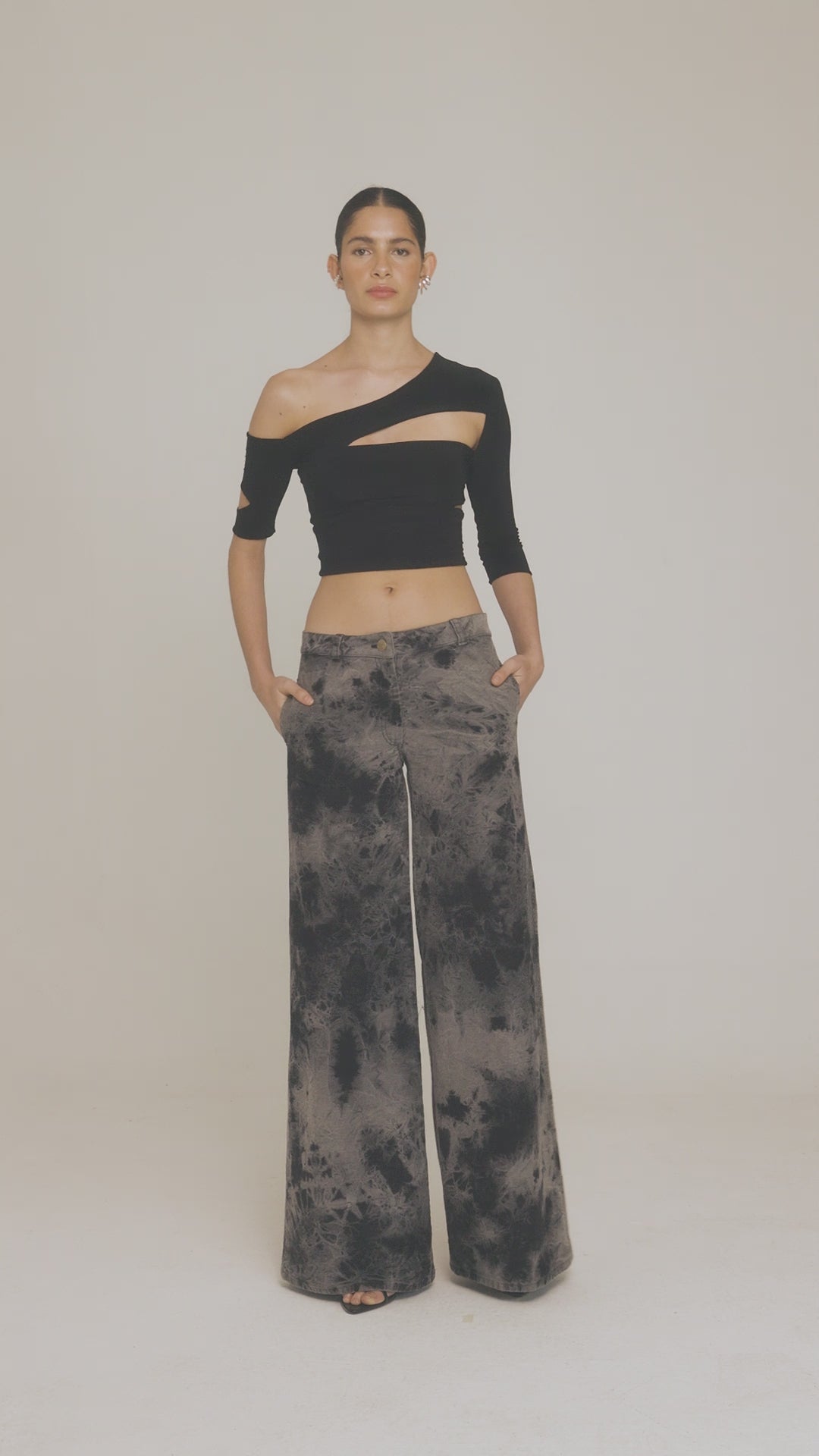 Mid-rise wideleg cotton jeans with tie-dye effect. Front closure with zipper and LH metal button..