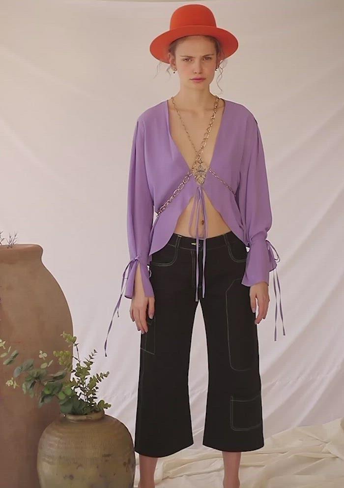 Dry clean in specialized professional laundry. Don't let it soak. Do not rub. Wash one piece at the time. Do not mix light with dark colors. Do not use bleach. Do not use fabric softener. Do not twist. Dry on the shadow vertically. Iron up to 110º C without steam, without pressure. Use iron protection. Special attention when washing with any frictional material such as zippers.